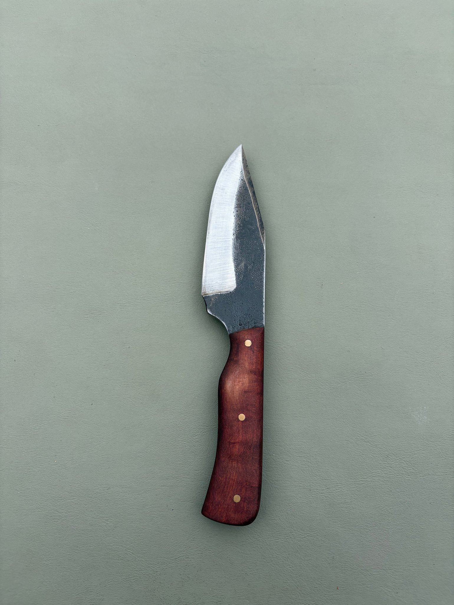 W2 steel. 3.5” blade 8” oal walnut handle.