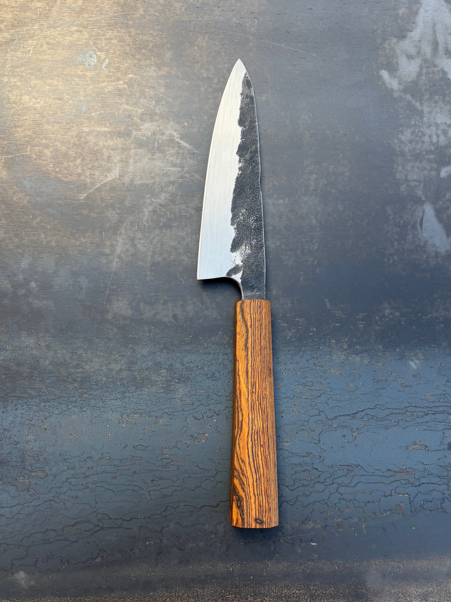 52100 alloy. Bocote handle. 6.875” 13.25” overall length.